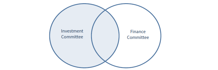Structure. The investment committee should be separate from the finance committee (although it may be designated as a subcommittee of the finance committee, if necessary). However, these two committees should have at least one member in common to ensure that the left hand knows what the right hand is thinking and doing (Figure 2).