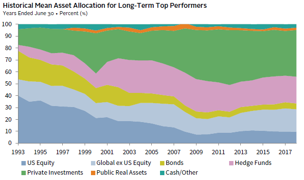 For most institutions, investing with a long time horizon is imperative to sustaining their organization’s mission into perpetuity. With most endowments and foundations, a mandatory spending rate also requires a focus on finding the best long-term investments to achieve the needed returns. The top performers have come to appreciate that private investments can potentially offer more compelling returns than public market equivalents over long time horizons, and successful investors have maximized their allocations accordingly. These investors also appreciate that building a robust private investment program takes time, skill, and discipline.