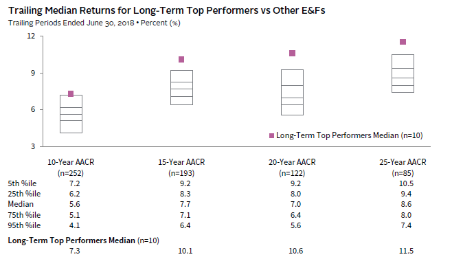 Note: Long-term top performers represent the institutions that were in the top decile for the 25-year AACR as of June 30, 2018.