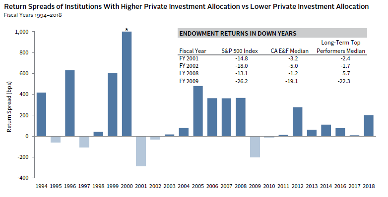 FIGURE 4 INSTITUTIONS WITH HIGH PRIVATE INVESTMENT ALLOCATIONS HAVE FARED WELL IN MARKET DOWNTURNS