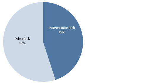 A pension’s benefit obligation represents an important cash flow commitment over many years. The size of the liability itself may be netted against plan assets for balance sheet purposes, but the interest rate sensitivity of a pension liability remains very real to plan sponsors. In fact, interest rate risk can account for almost half of the expected volatility in a plan’s funded status (Figure 6). Thus, pensions must continually assess the effect of interest rate sensitivity on both sides of the ledger. The discount rate for a plan liability is of course subject to market conditions and impossible to predict or control. What financial executives can control is calibrating the plan’s sensitivity to interest rates.