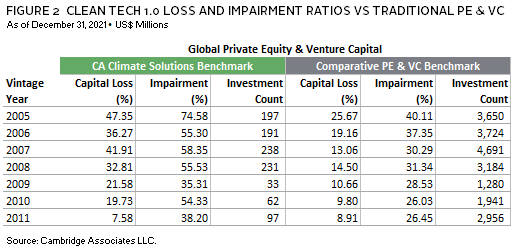 FIGURE 2 CLEAN TECH 1.0 LOSS AND IMPAIRMENT RATIOS VS TRADITIONAL PE & VC
