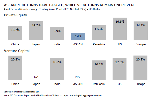 Over time, the influx of capital and talent (both globally and from China) could strengthen the entrepreneurial and manager ecosystem within ASEAN and improve future returns and deepen the opportunity set. However, in the near term, ASEAN PE/VC remains less attractive compared to other Asian or global markets and faces implementation challenges.