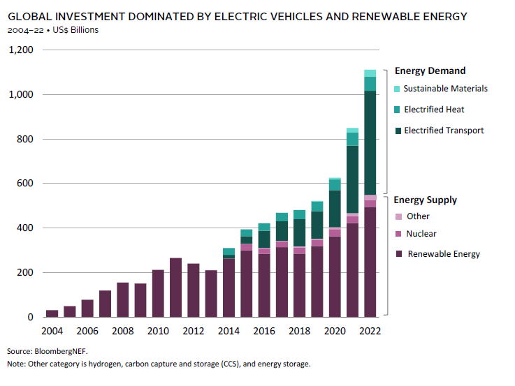 The energy transition involves a complex and dynamic set of changes in the way we do just about everything from activities as mundane as manufacturing steel and cement to heating buildings and transportation. While significant progress has been made in some quarters, considerable capital will be needed to fund the massive investment required over coming decades. The investment opportunities and the disruptive forces this evolution brings will create plenty of winners and losers that require investor focus. We expect investors with a deliberate and thoughtful plan to invest in the transition across the risk/reward spectrum will be rewarded.