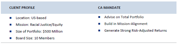 This approach addresses myriad pain points we have uncovered. These include the association of social equity investing with lower or concessionary returns, a failure to acknowledge the intersectionality 3 and interconnectedness of sustainability and impact issues that result in siloed portfolio approaches, and inaccurate language used to describe and define social equity—particularly the conflation of broad social and racial equity with diverse manager investing.