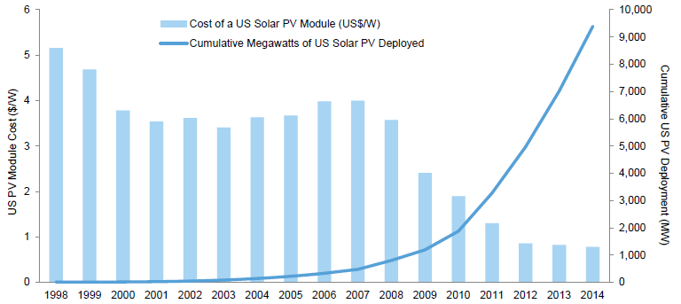 Figure 4. US Deployment and Cost for Solar Photovoltaic Modules
