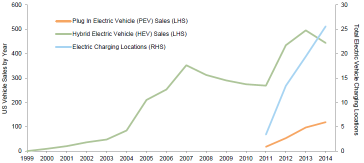 - Ben Geier, “Electric Vehicle Sales Charged Up in 2014,” Fortune, January 8, 2015.