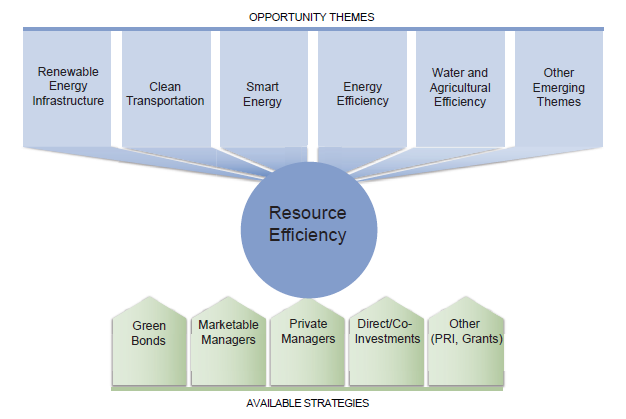 - Marketable equity strategies in resource efficiency that have exposure to downstream renewable infrastructure development, financing, and service businesses.
