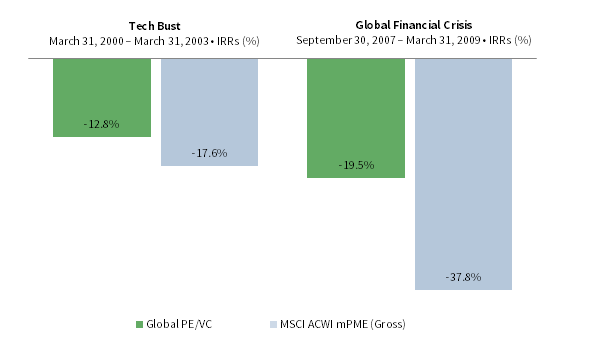 FIGURE 6 PUBLIC VS PRIVATE EQUITY RETURNS DURING THE TECH BUBBLE AND THE GLOBAL FINANCIAL CRISISFIGURE 6 PUBLIC VS PRIVATE EQUITY RETURNS DURING THE TECH BUBBLE AND THE GLOBAL FINANCIAL CRISIS