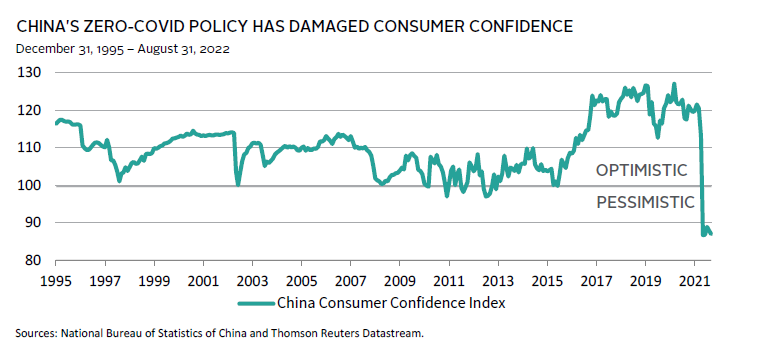 This leaves zero-COVID as the last major policy pivot for China. China has been effective at containing the spread of the virus and limiting COVID-related deaths, but the economic costs are mounting. Consumer confidence has collapsed to record lows, and urban youth unemployment is at a record high of 20%. Frequent lockdowns, even if short in duration, create a sense of uncertainty for households and businesses that hold back spending and investment, including property investment. Thus, it is hard to see a meaningful economic recovery without some form of policy shift on COVID-19.