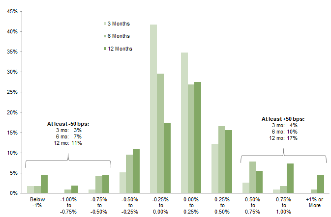 Figure 2. Frequency of Spread Changes in the Barclays US Long Credit Aa Index Over Select Time Intervals