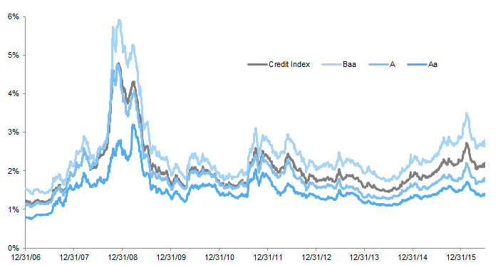 Figure 5. Credit Spreads of the Barclays US Long Credit Index by Quality