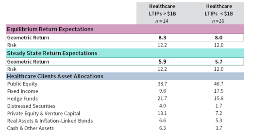With investment losses largely recovered and volatility subsided, we believe this is a good time to refresh enterprise and investment models and reassess whether current portfolio structures are appropriate relative to the current outlook. We know that most healthcare systems conduct the exercise of an enterprise and strategic asset allocation review once a year, but we would advocate for conducting this review as soon as possible, even if “off-cycle.”
